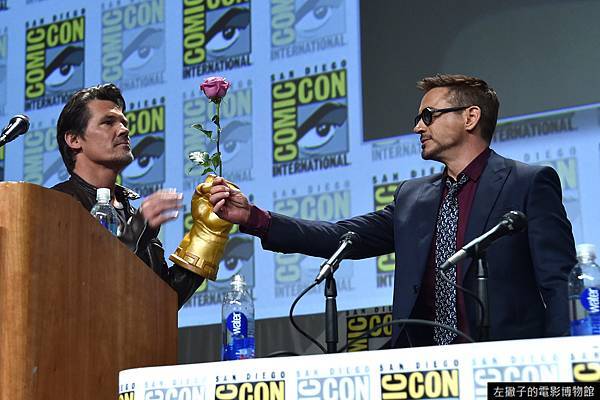 扮演薩諾斯的Josh Brolin也出席了,手上果然裝備著無限手套。鋼鐵人獻給他的花還被吃掉了。
